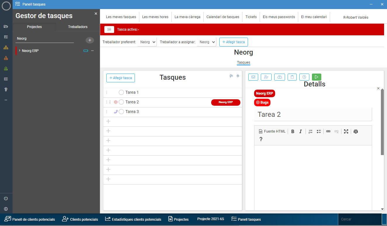 Gestió de tasques i processos, distribució del treball i asignació de costos integrat amb el nostre mòdul de projectes.